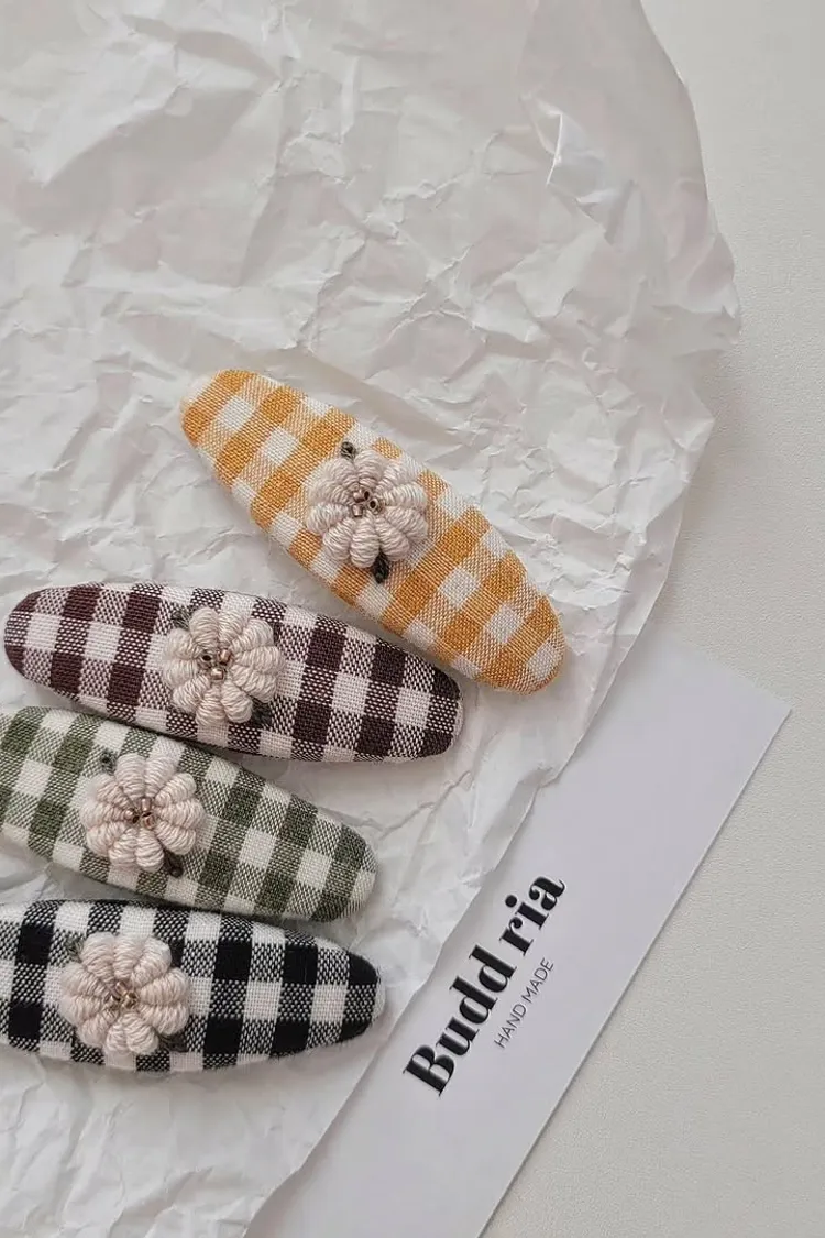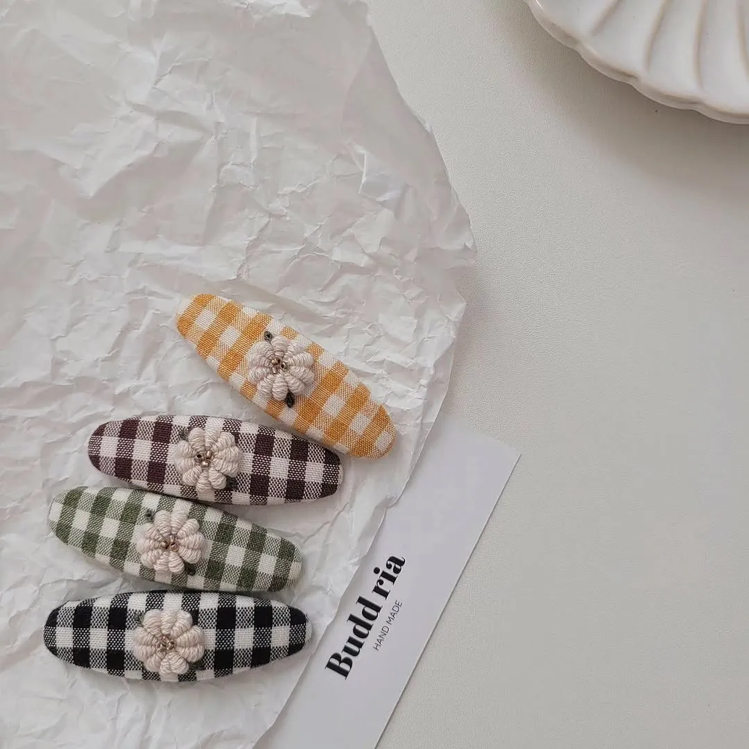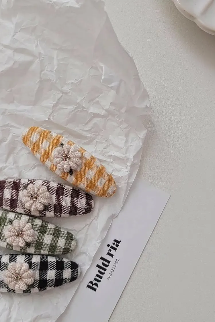 奶油小花花格子髮夾