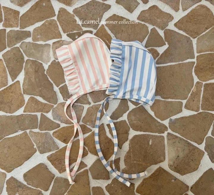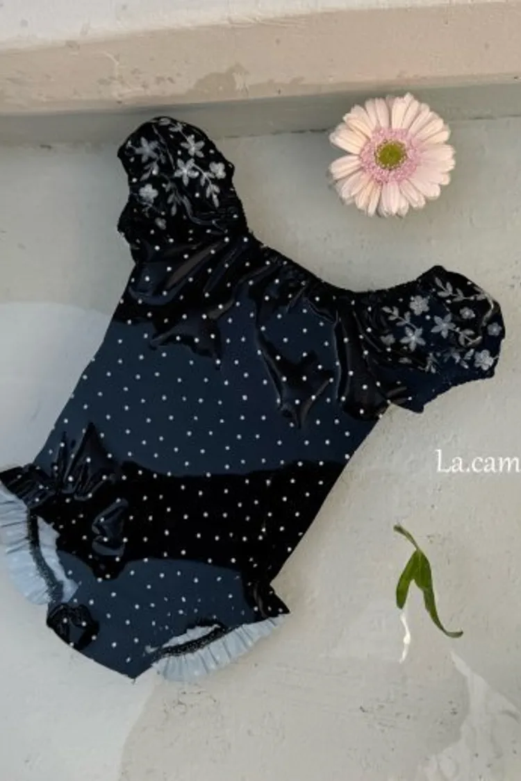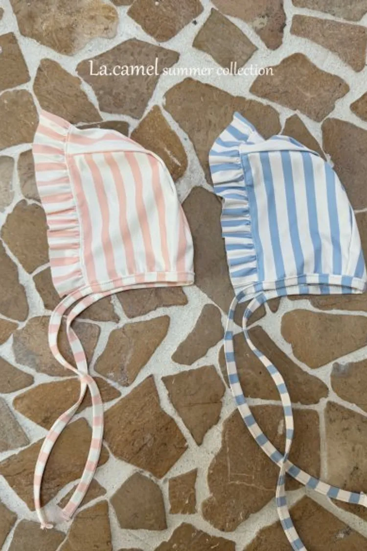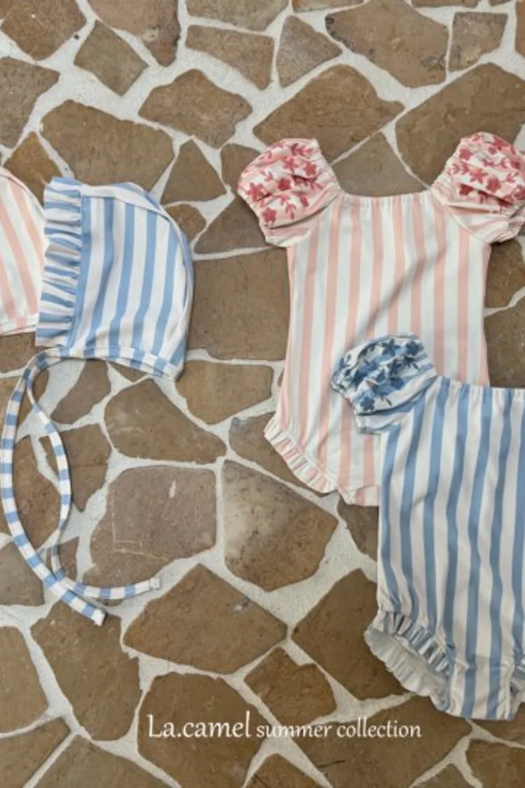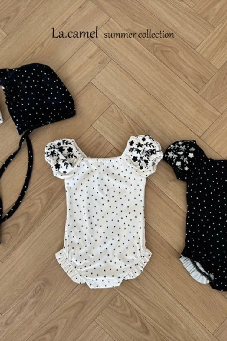 圓圓袖條紋點點泳衣/泳帽