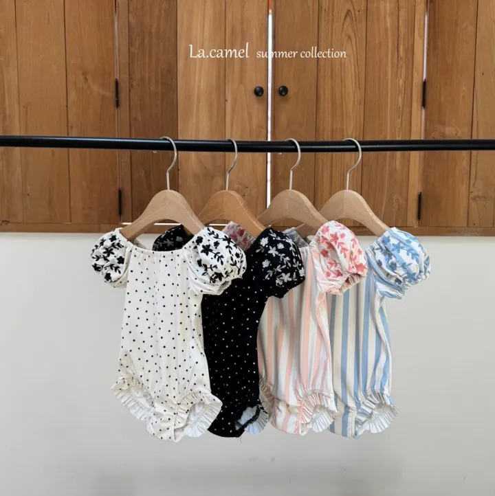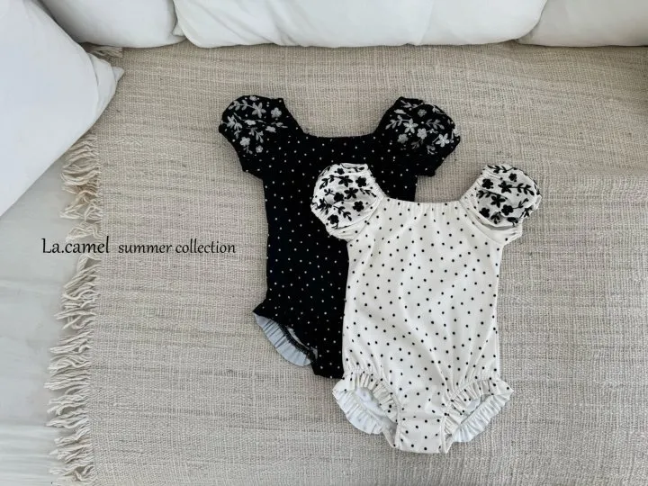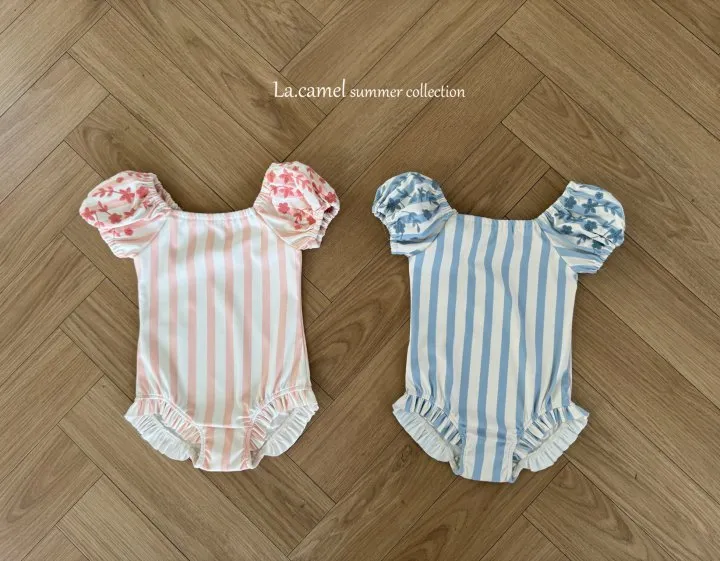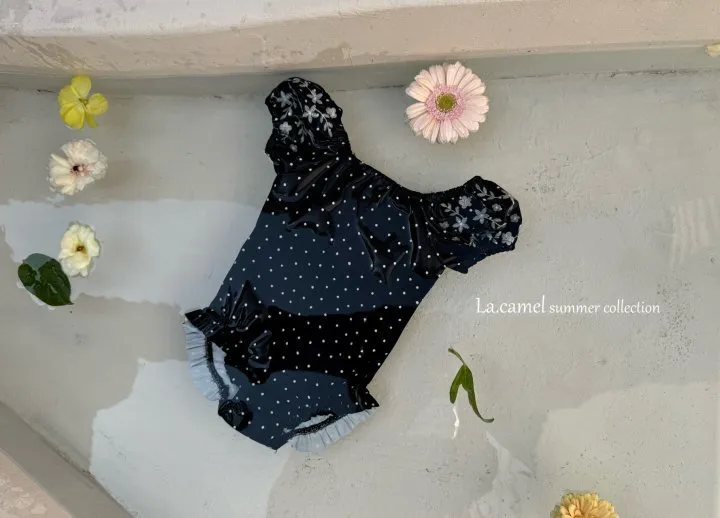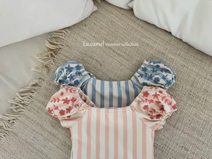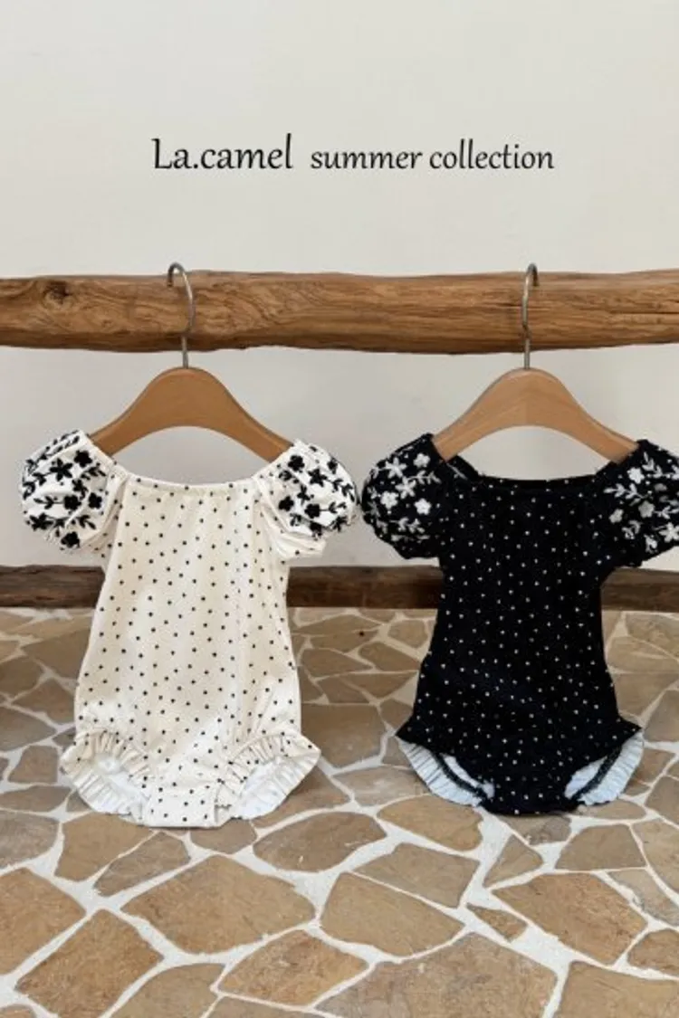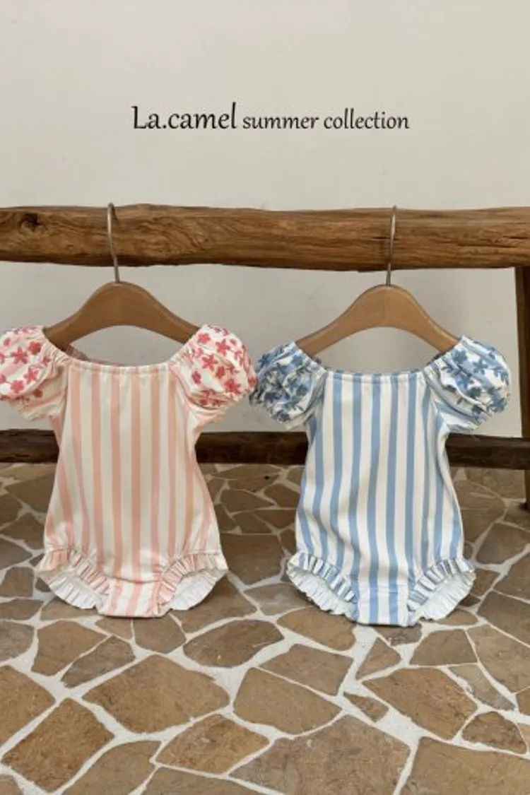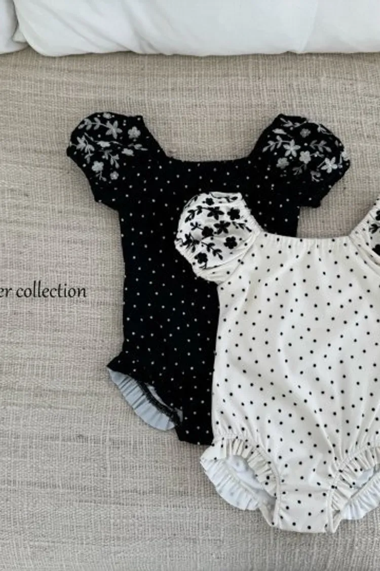 圓圓袖條紋點點泳衣/泳帽