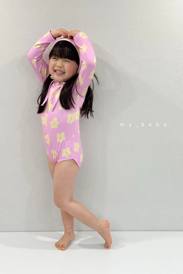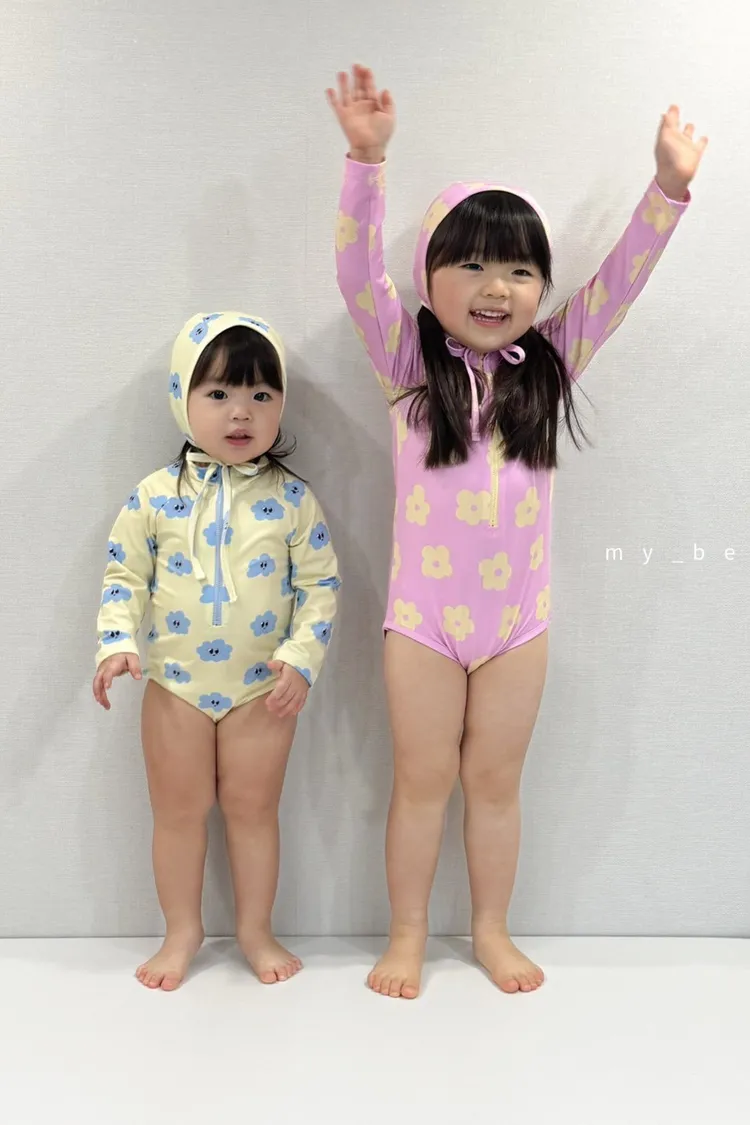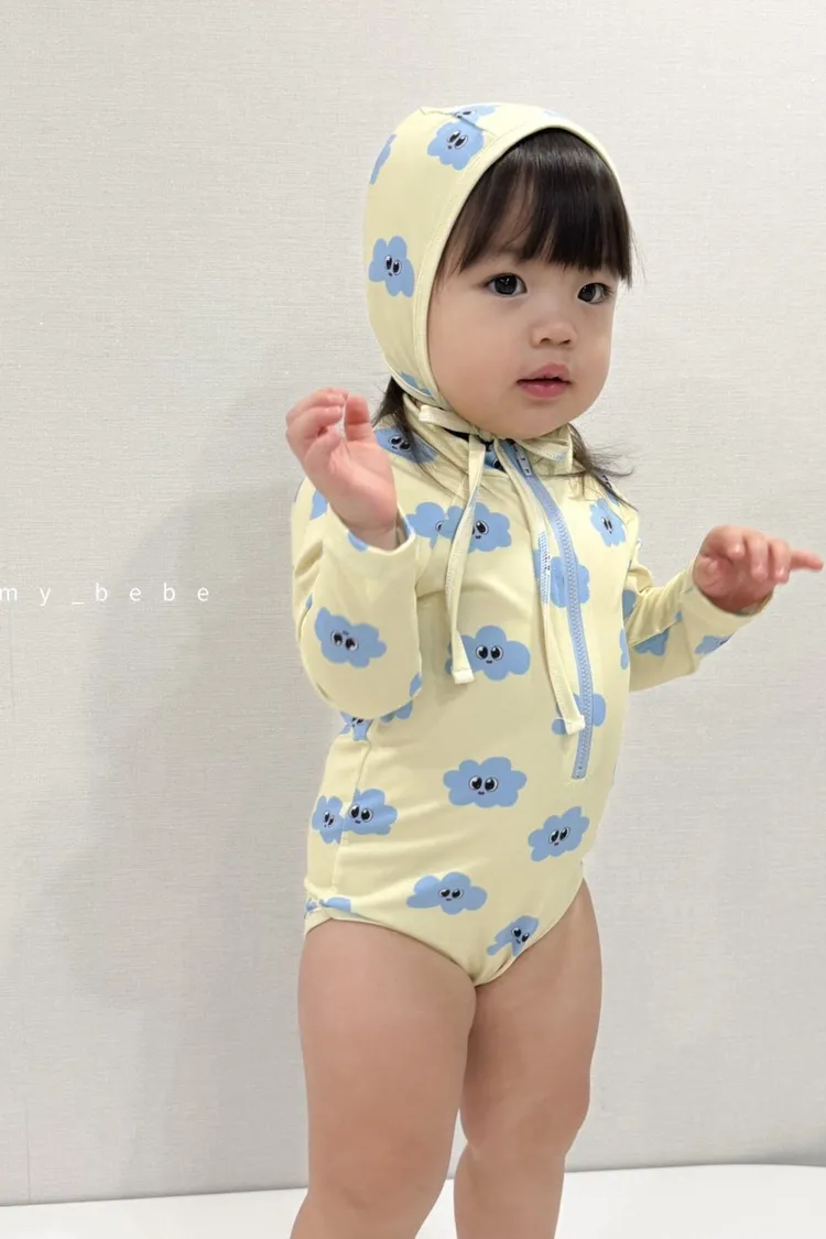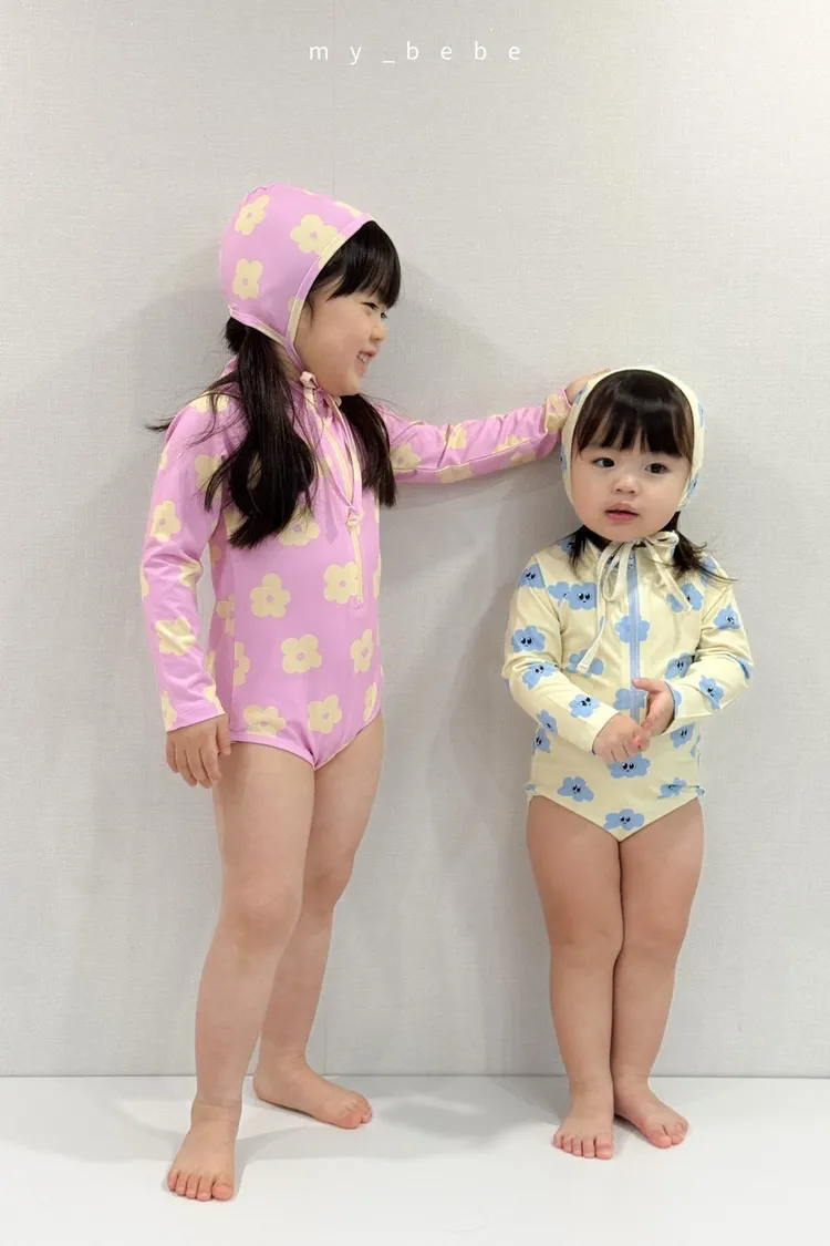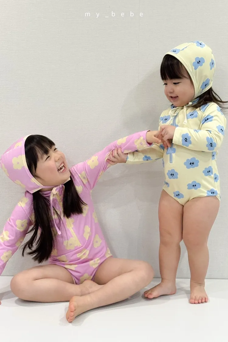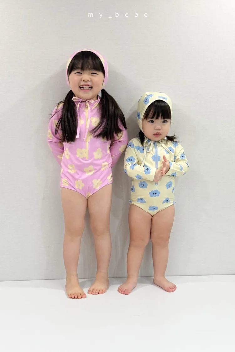 韓國_雲朵花花泳衣(含帽)