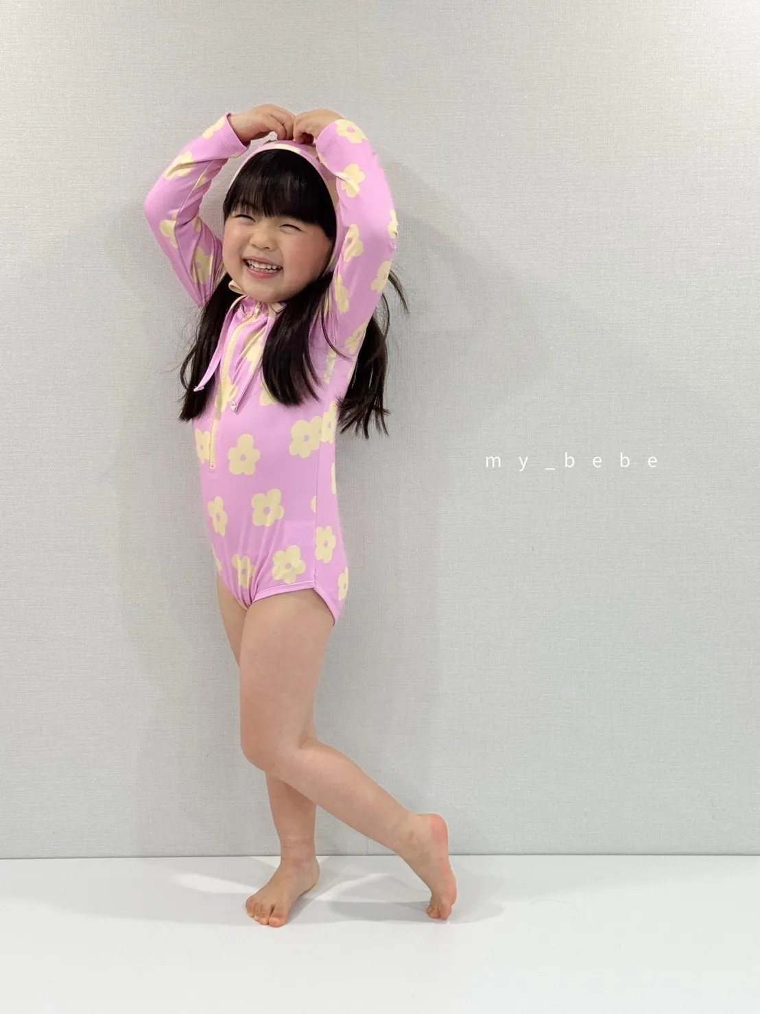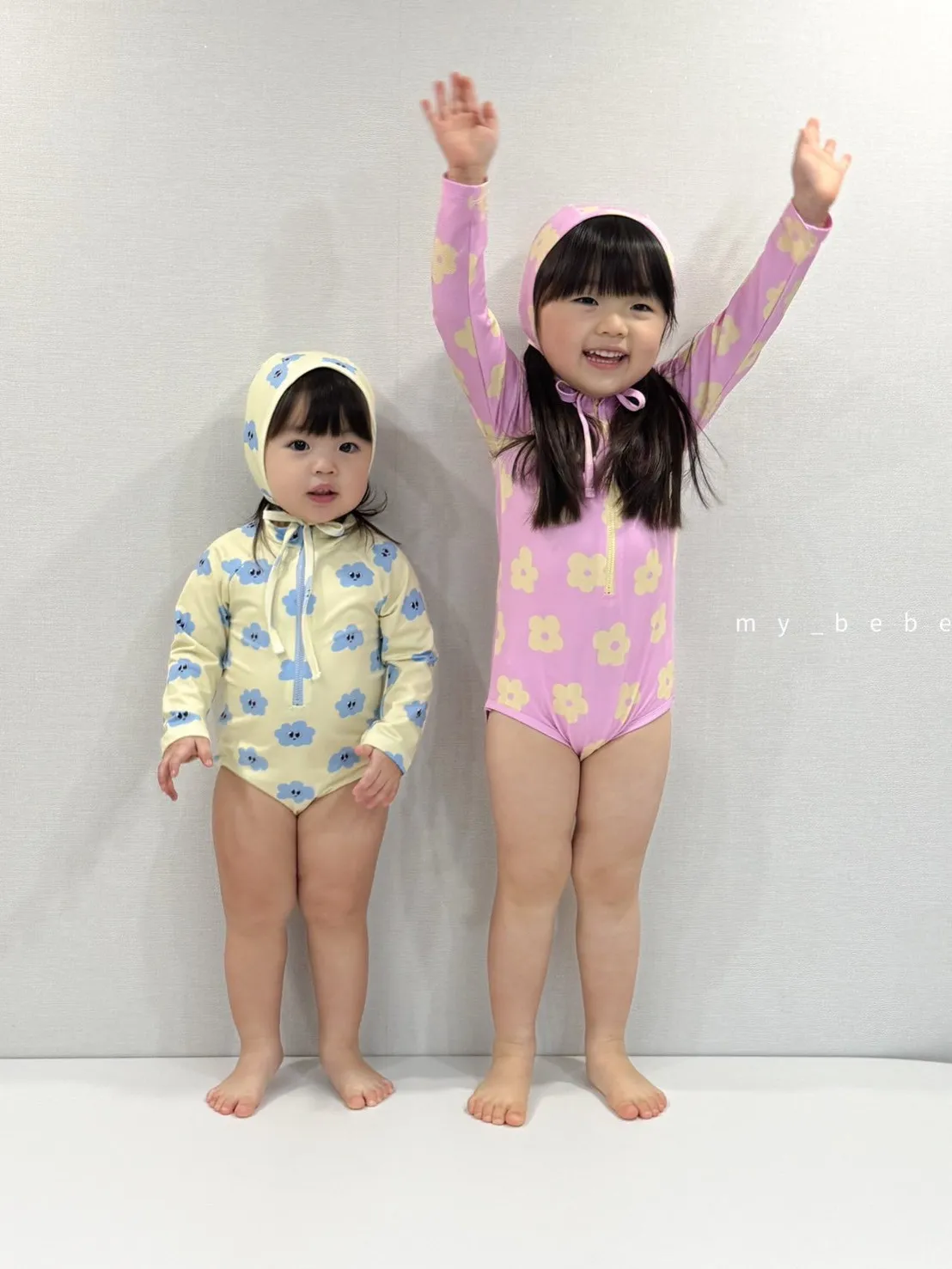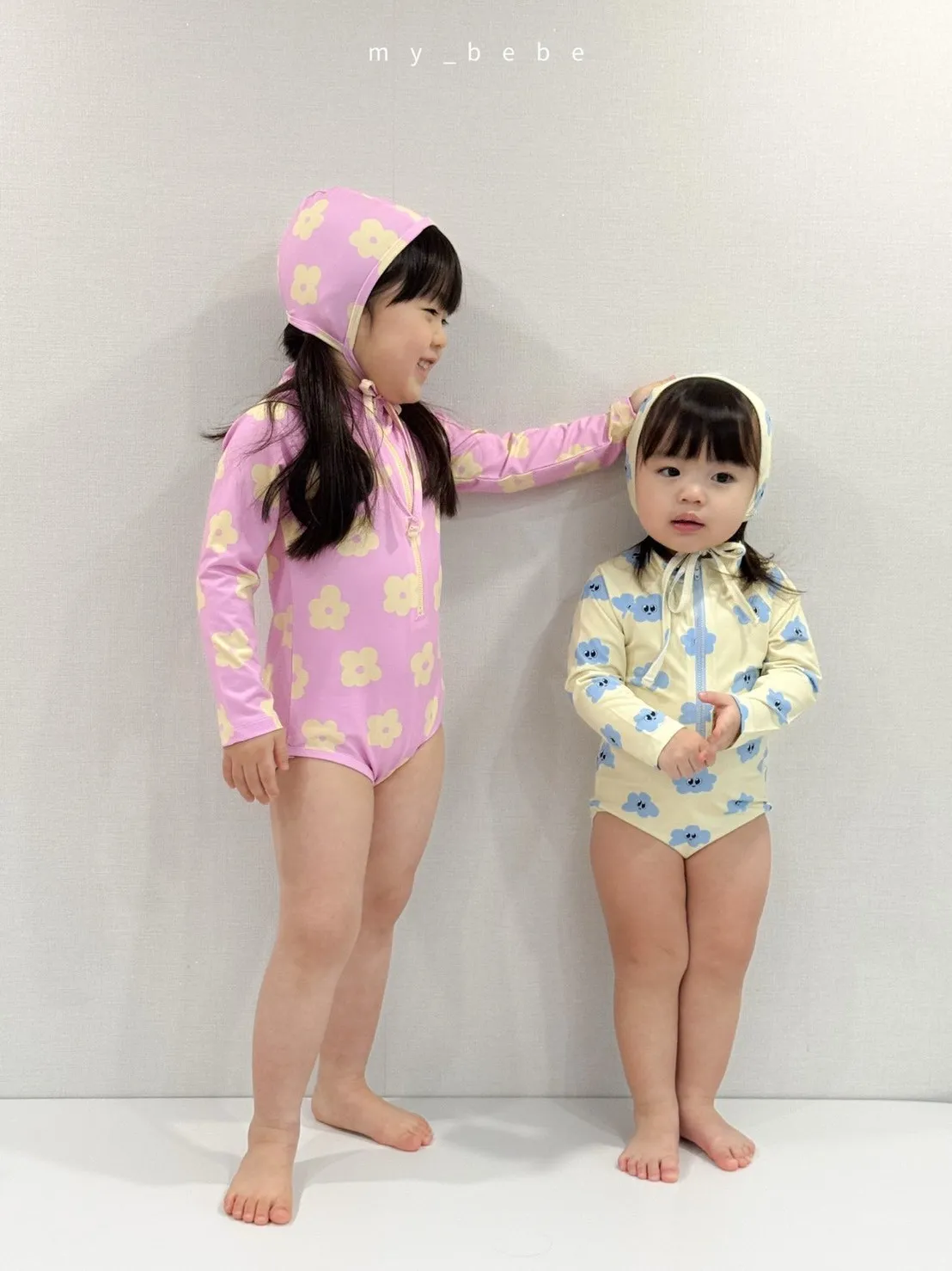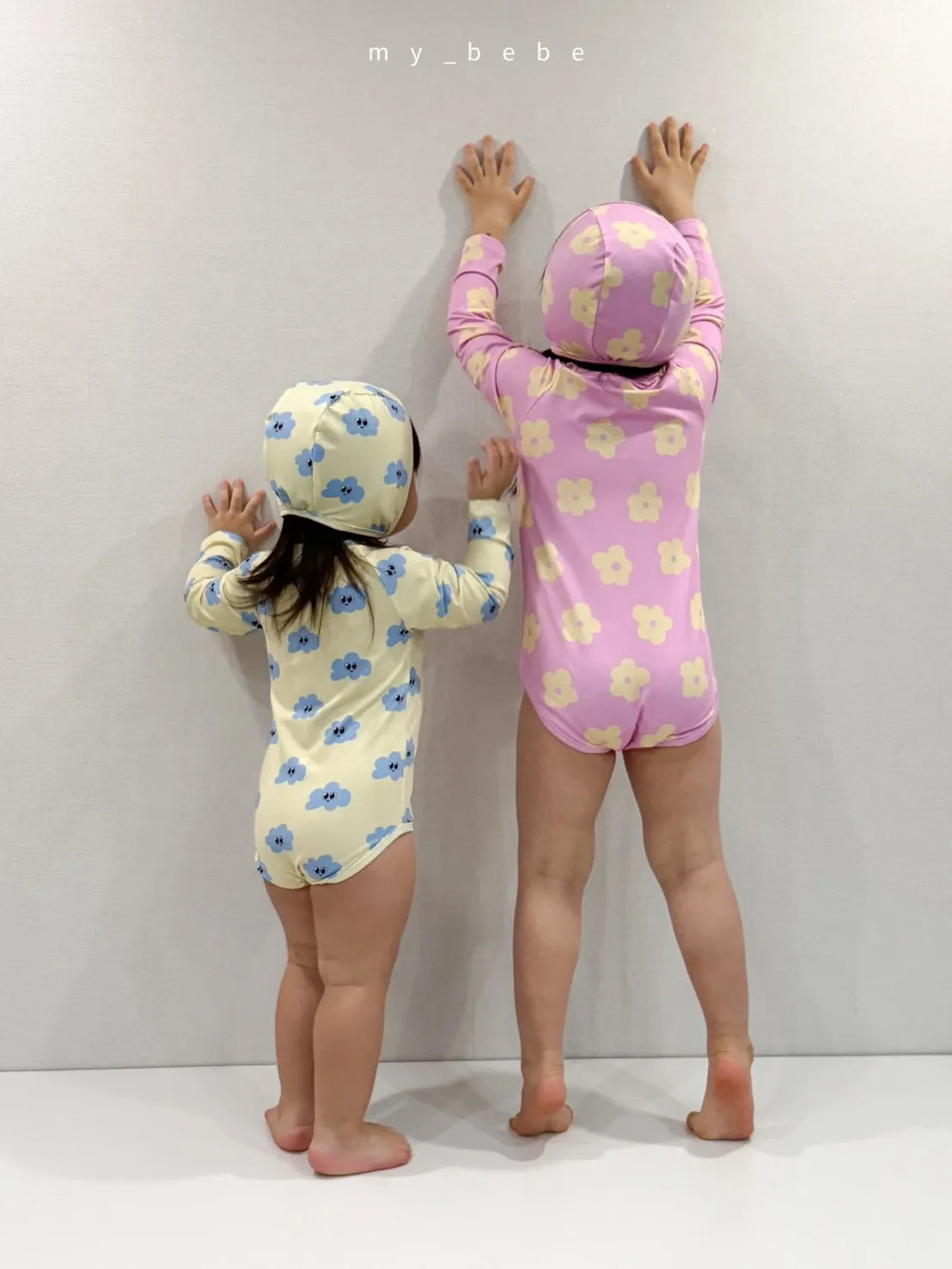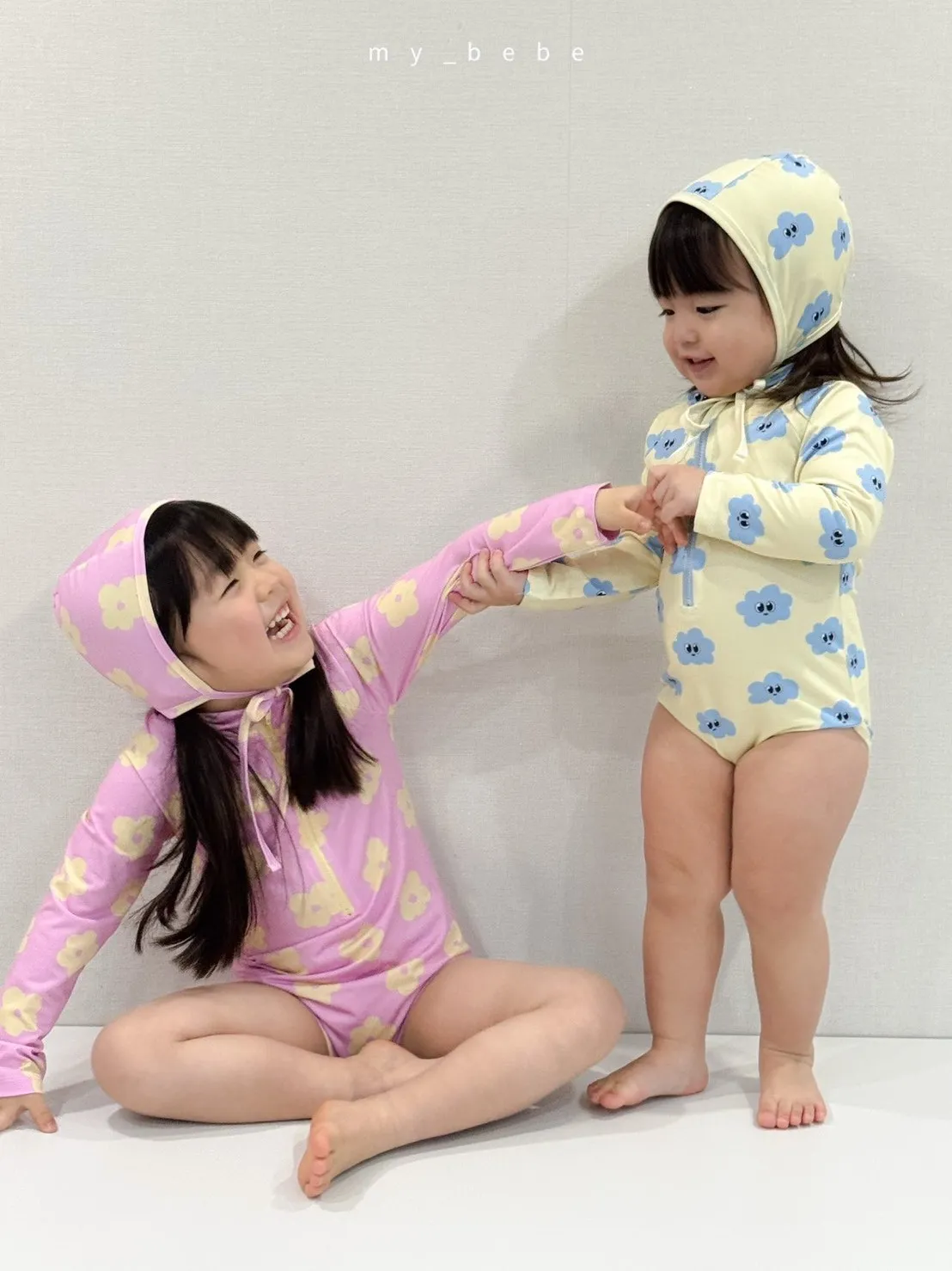 韓國_雲朵花花泳衣(含帽)