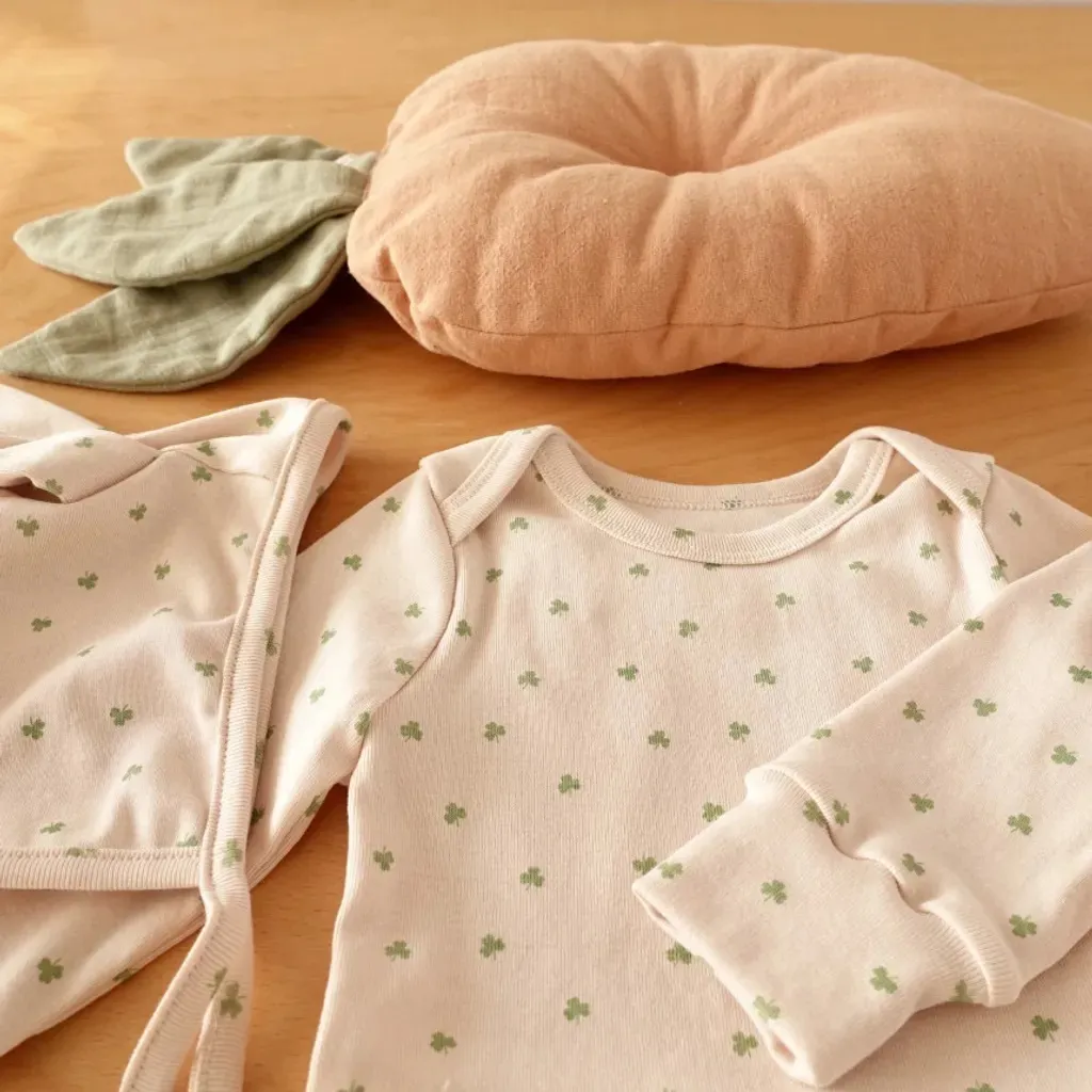 有機棉長袖幸運草包屁裝(3-12m/12-18m)