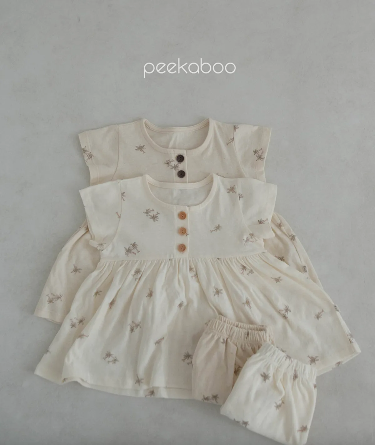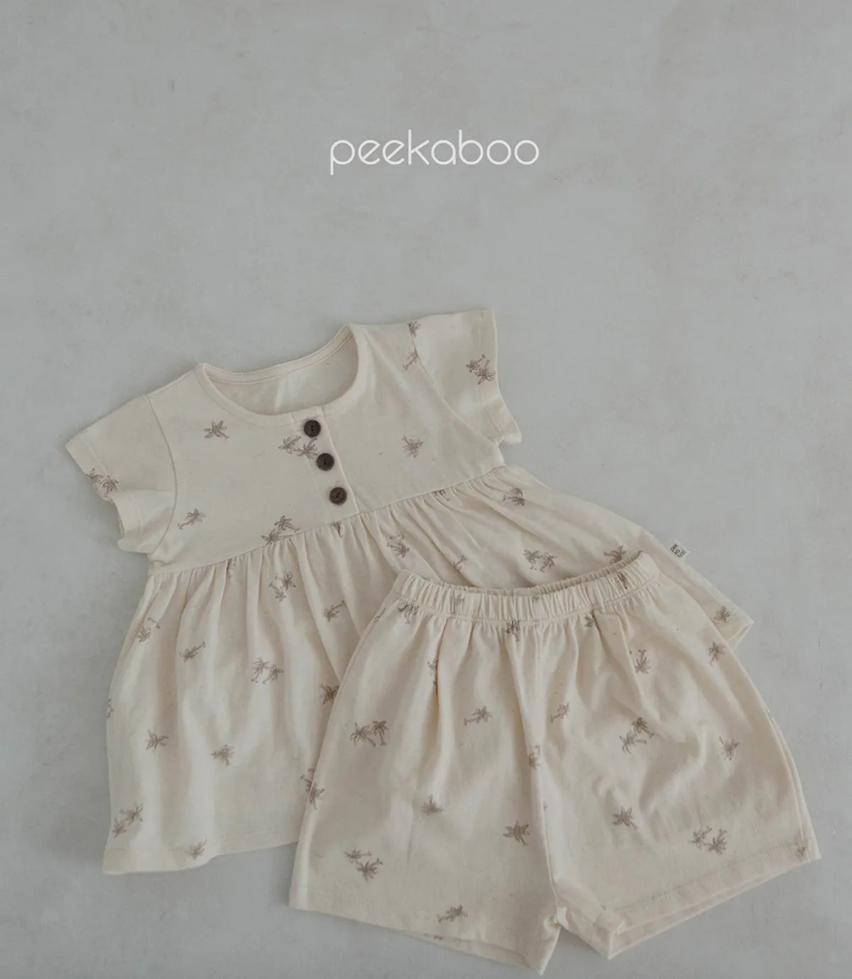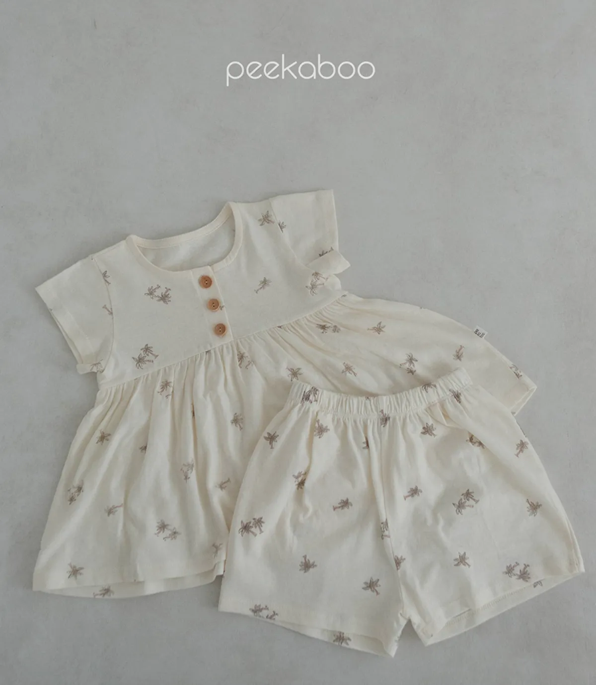 Loha 奶油棕櫚樹質感女寶上衣嫩嬰套裝