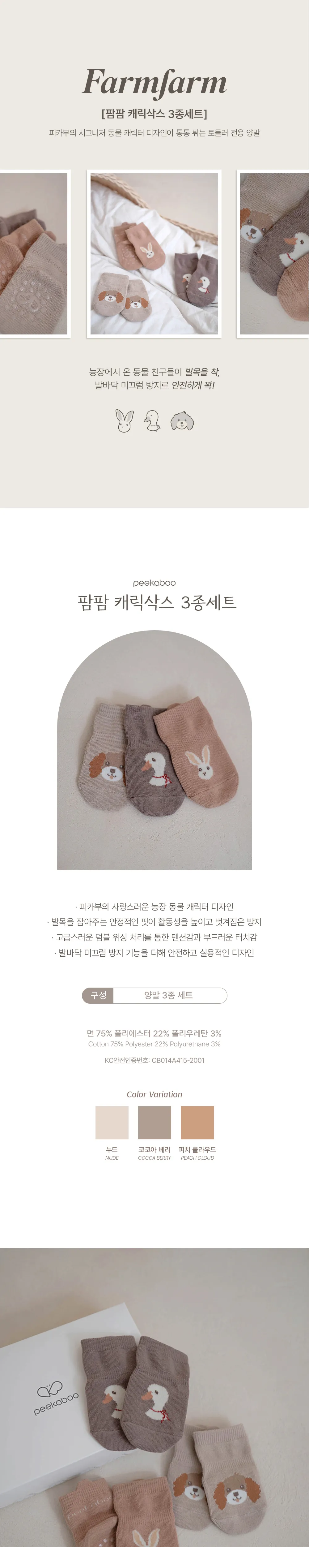 Farmfarm 超可愛動物3入組襪子