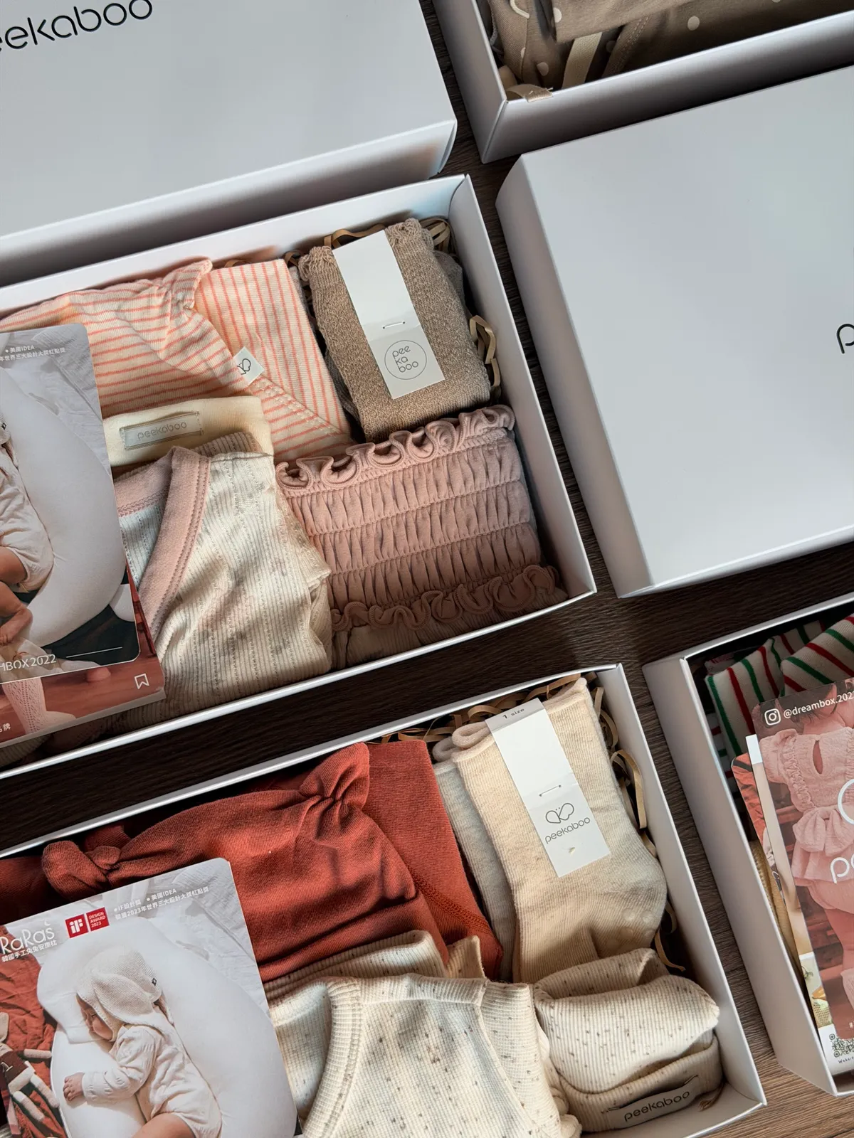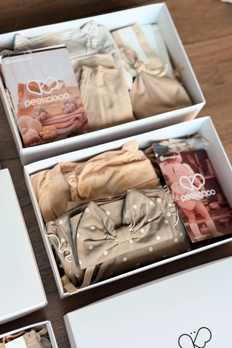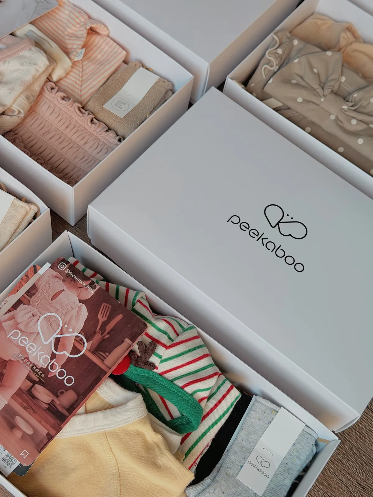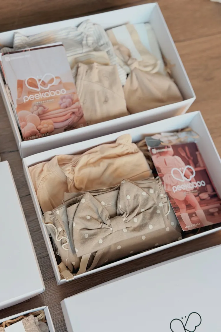 禮盒包裝包含:紙盒+帆布提袋(各一) S:長23cm寬15cm高5.5(可放1-2套衣服)M:長30cm寬19cm高7.5cm(可放2-3套衣服)!若購買6件衣服想要使用禮盒包裝,會需要下單2個M的禮盒! !!也可以私訊(@dreambox2022)跟小幫手們討論禮盒包裝的方式唷!!