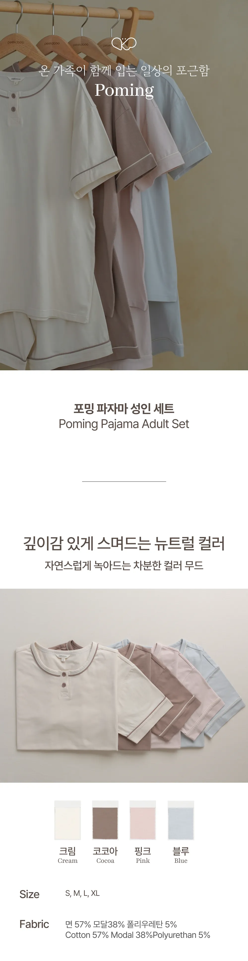 Poming 輕柔莫代爾涼感爸爸媽媽上下套裝