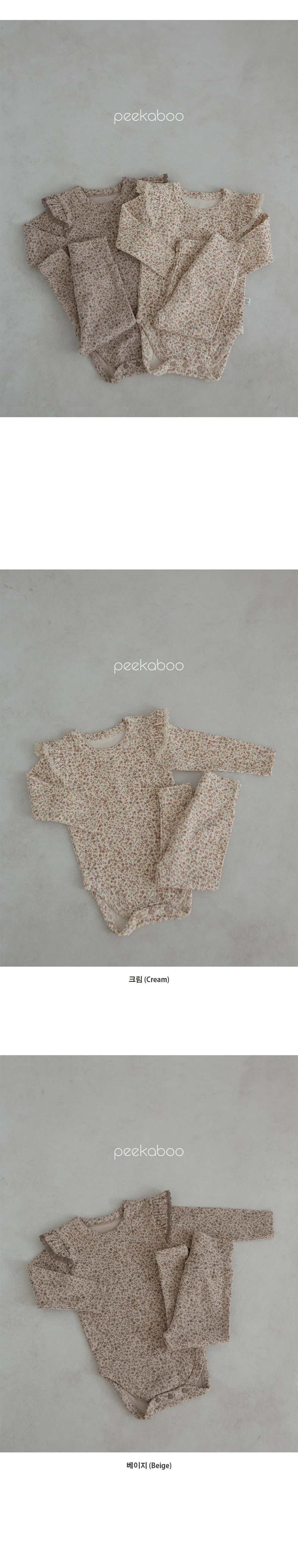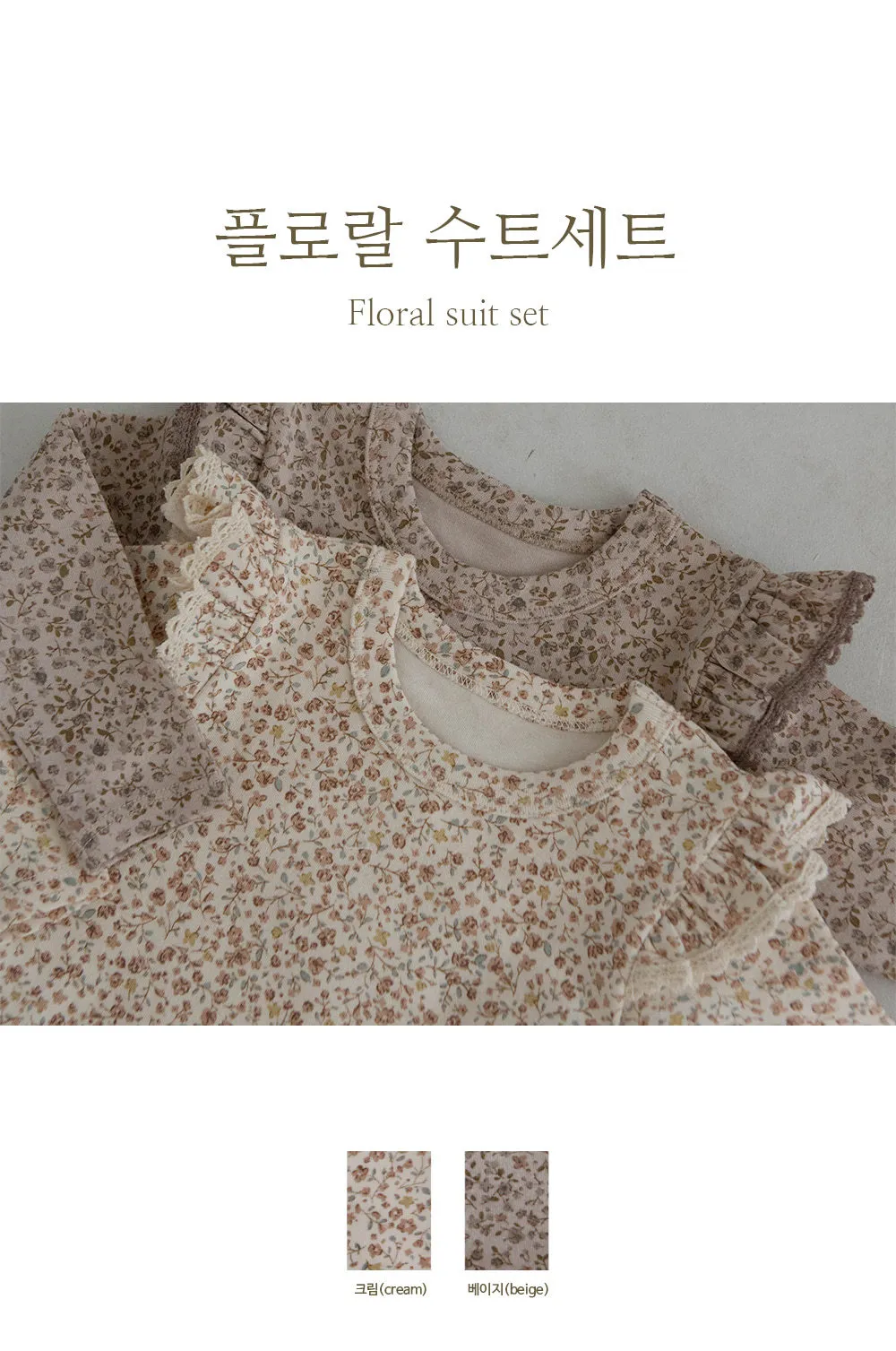 Floral 滿版碎花荷葉蕾絲褶肩嫩嬰套裝(包屁衣+褲子)(現貨)